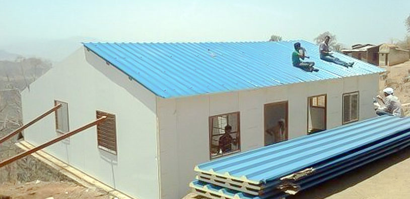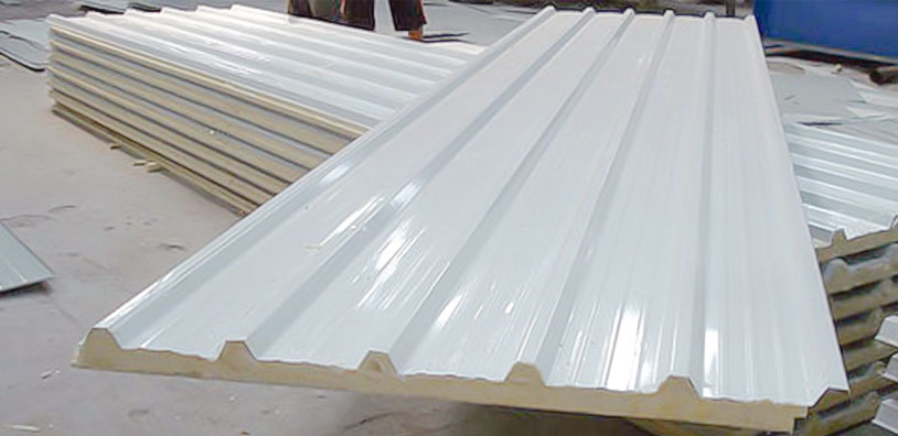 Pre-fabricated Composite Panels or Insulated Panels for Roofing & Cladding are Sandwich Panels manufactured with profiled Color Coated Metal – Zinc Coated / Galvalume Coated Steel Sheets or FRP / GRP Profiled Sheets duly Sandwiched with PUF (Polyurethane Foam) as the insulation material.